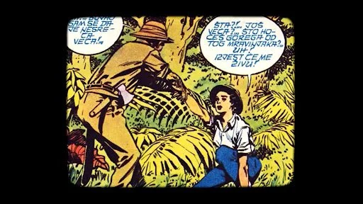 Rather than offering a linear biography, the film unfolds as an atlas of traces. It invites us to an expedition through a wide range of visual and textual materials: fragments of archival and family footage, newly shot studio scenes and from a trip to the Amazon; photographs taken by María during her adventures and newly made documentation of indigenous artifacts (also from her travels); historical government documents, and even a Croatian comic where María features as the damsel in distress, pointing at the outrageous paths a person’s public persona can take, often imagined by others, and especially by men. The journey is deliberately erratic, following chance connections and intuitive leaps, mirroring the logic of historical expeditions themselves, which often responded more to coincidence, opportunity, and fantasy than to any heroic search for truth. In fact, the sex-appeal of the unknown is that its mystery cannot be revealed.